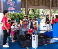 Basquete e Robótica, tudo a ver! O Cabanga Crabs, time de basquete do nosso Clube, trouxe para uma ação a Equipe Unity Sunset FTC…