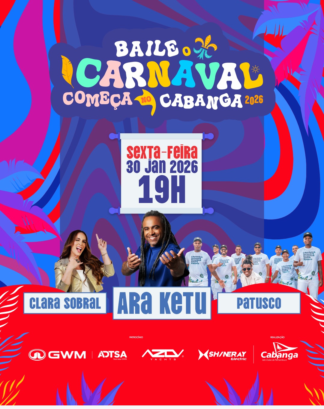 Ô abre alas… Estão confirmadas as atrações para o Baile O Carnaval Começa no Cabanga! Ara Ketu, Patusco e Clara Sobral vão agitar a nossa prévia carnavalesca! Vai ser animação em nível máximo!
