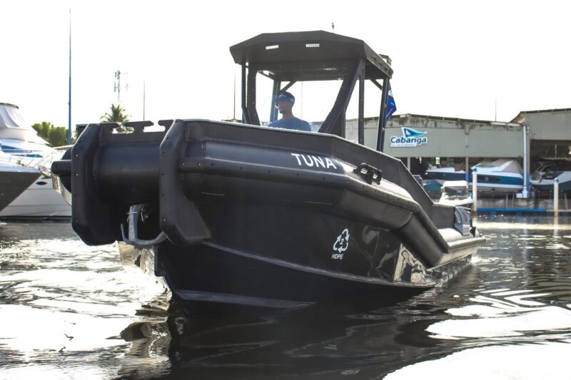 O Tuna, construído 100% em PEAD – polietileno de alta densidade, material de alta resistência empregado pelo estaleiro Black Marine, de Santa Catarina, especializado na construção de embarcações militares, paramilitares e para serviços críticos como busca e salvamento e apoio portuário, destaca-se pela durabilidade e versatilidade. Pedro Springmann, diretor do estaleiro, enalteceu as qualidades indiscutíveis do material.