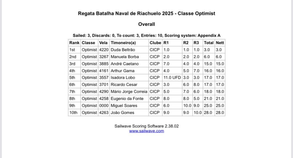 A Bacia do Pina, no Recife, foi palco da Regata Batalha Naval do Riachuelo de Optimist no último domingo (15/06). Foram três regatas disputadas e a premiação acontecerá no dia 10 de julho, às 19h30, no Cabanga Recife.
