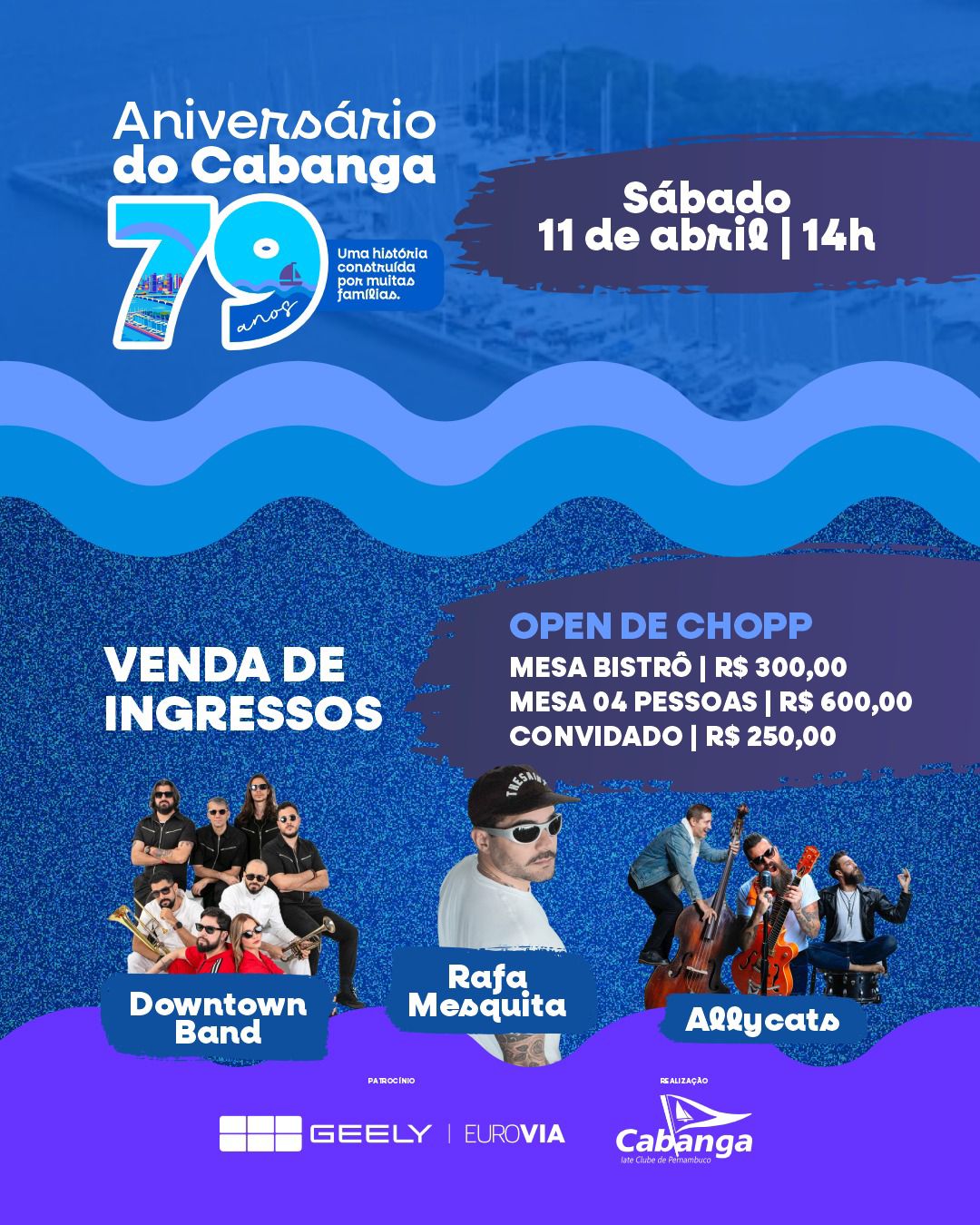 Começamos nesta segunda (06/04) a entrega e venda dos ingressos para a Festa de Aniversário dos 79 anos do Cabanga, que será realizada no sábado, 11 de abril.