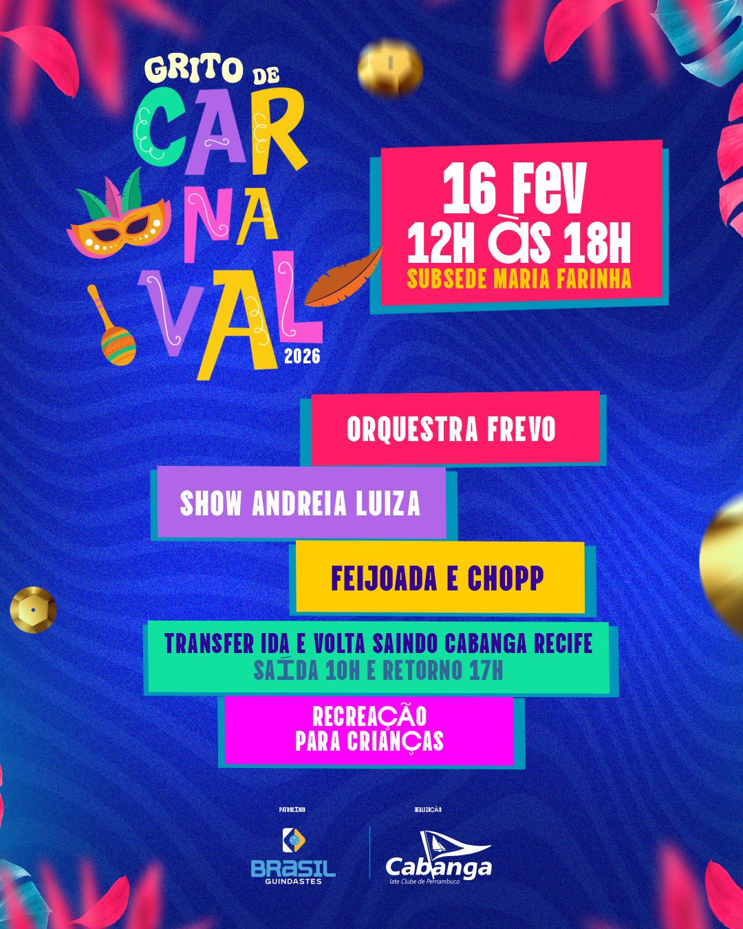 A folia segue com tudo no Cabanga. Na segunda-feira, 16 de fevereiro, vamos ter nosso tradicional Grito de Carnaval na Subsede de Maria Farinha.