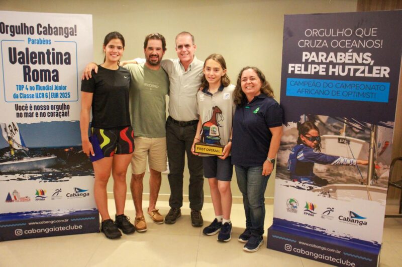 A dupla falou um pouco da experiência de competições internacionais. Valentina, de 16 anos, acaba de conquistar um 4º lugar no Campeonato Mundial Júnior de Ilca 6 em Los Angeles. Já Felipe Hutzler, 13 anos, foi campeão do Campeonato Africano de Optimist na semana passada.