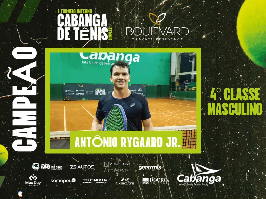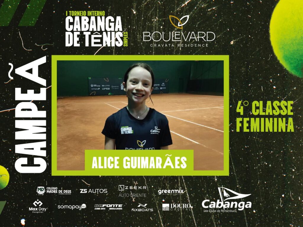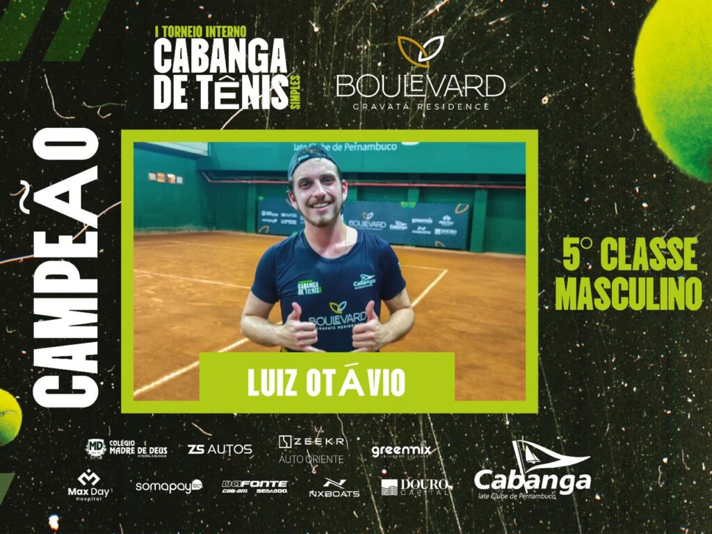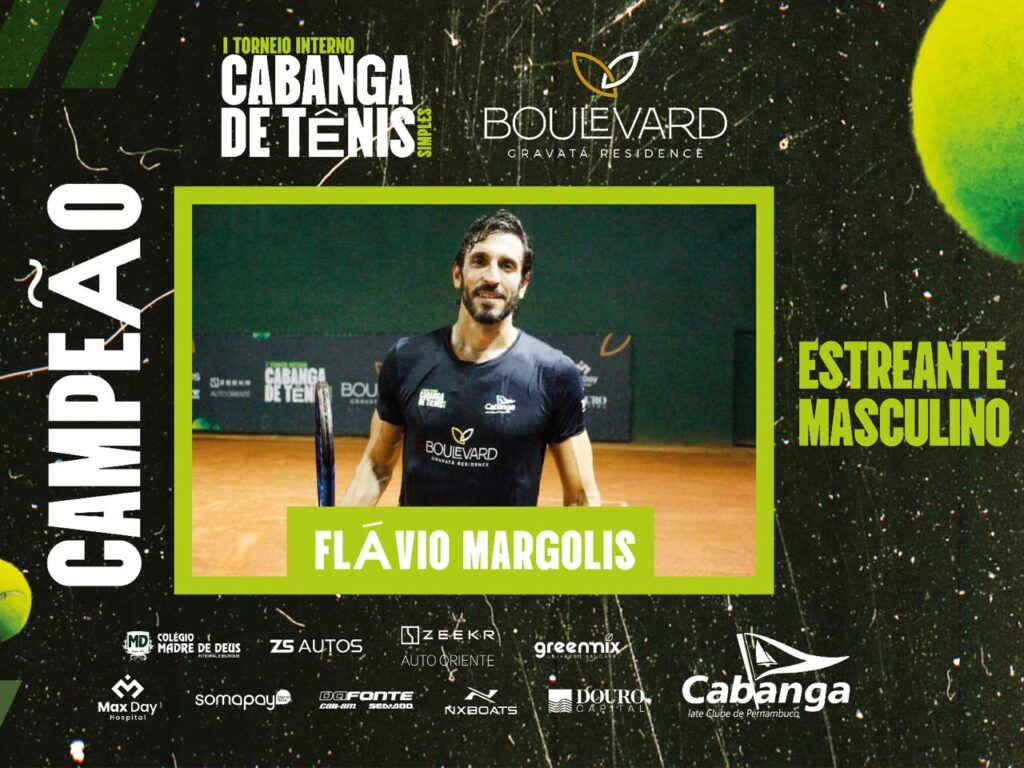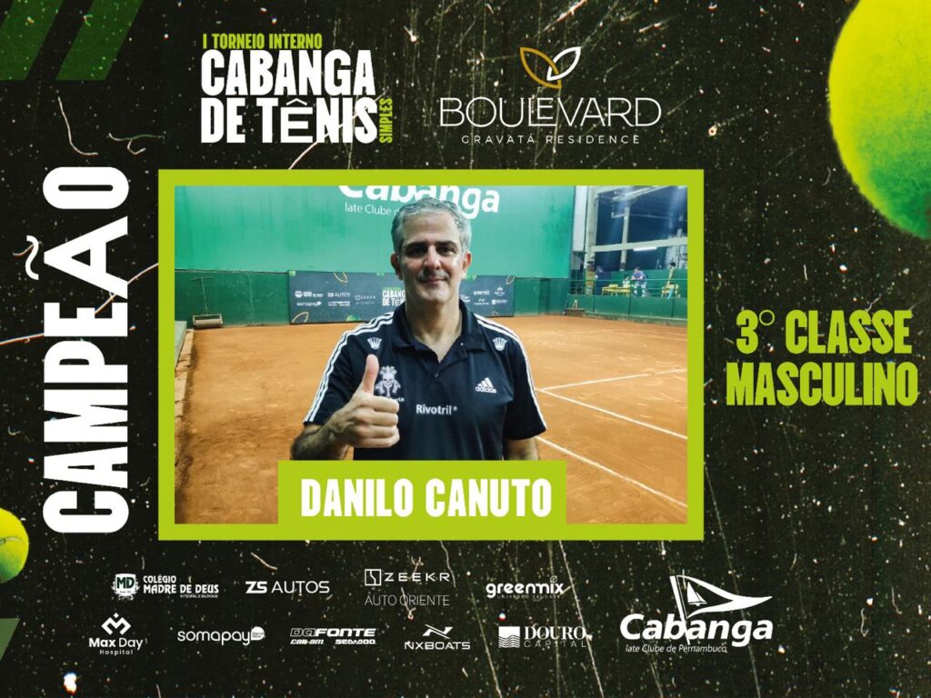 O I Torneio Interno Cabanga de Tênis Simples é uma organização do Cabanga, com patrocínio master da Boulevard Gravatá Residence e patrocínio do Colégio Madre de Deus, ZS Autos, Zeekr Auto Oriente, Greemix, Max Day Hospital, Somapay, Da Fonte, NXBoats e Douro Capital.